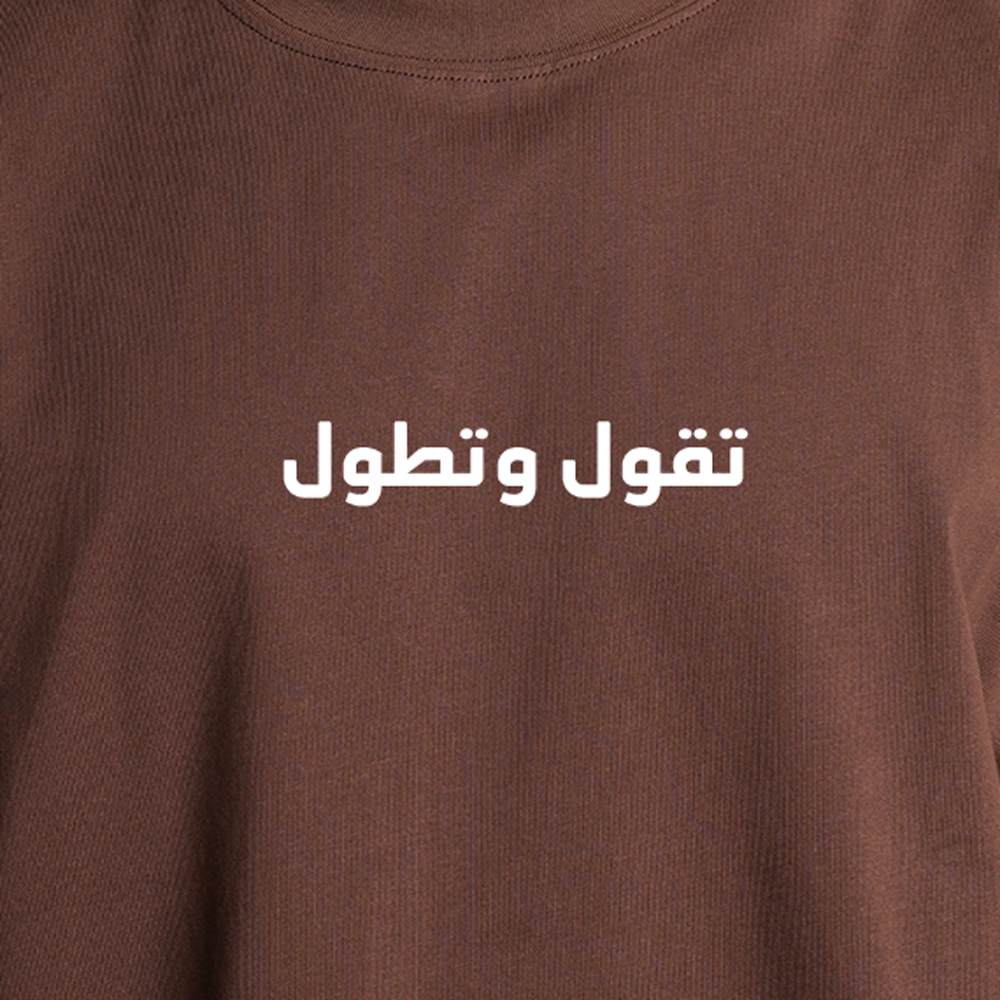 طبعة مع عبارة تقول وتطول، بلون متباين من الأمام